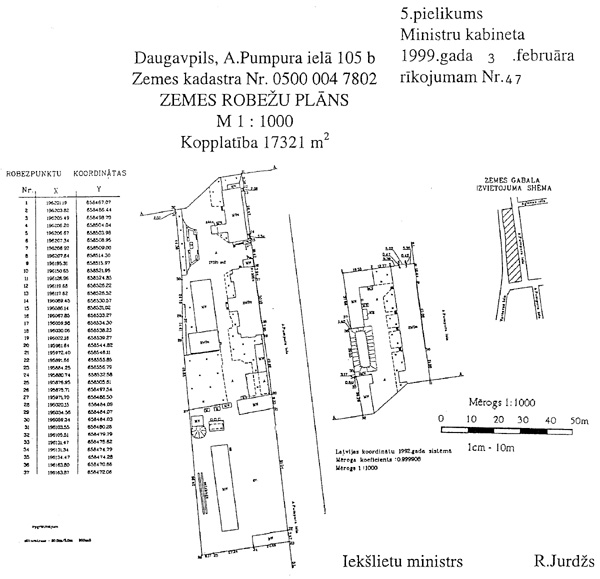 1.5. zemesgabalu 17321 m2 platībā (zemes kadastra Nr. 0500 004 7802, zemesgabala robežas norādītas 5.pielikumā) Daugavpilī, A.Pumpura ielā 105b;