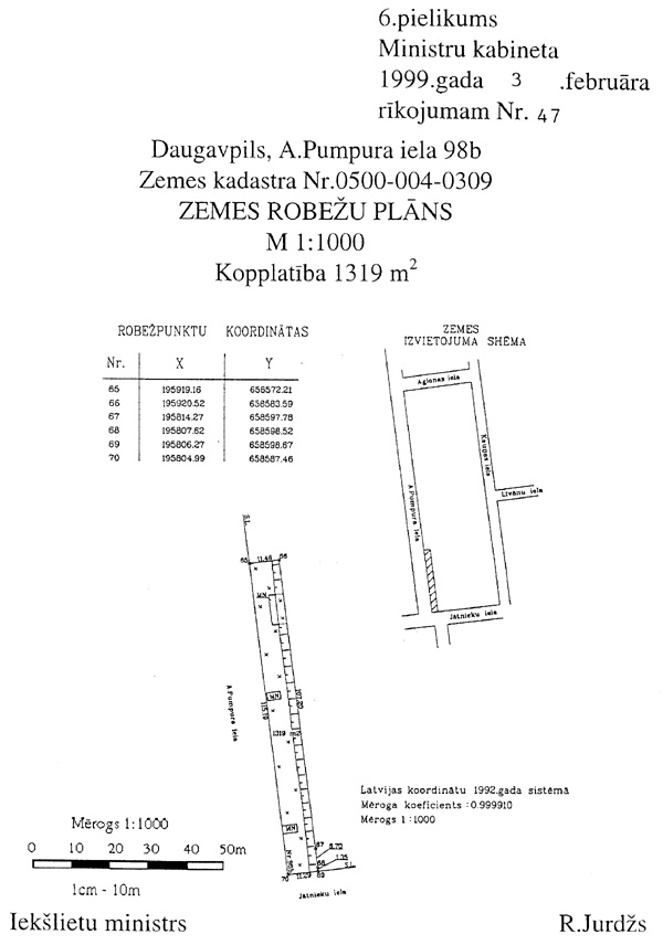 1.6. zemesgabalu 1319 m2 platībā (zemes kadastra Nr. 0500 004 0309, zemesgabala robežas norādītas 6.pielikumā) Daugavpilī, A.Pumpura ielā 98b;