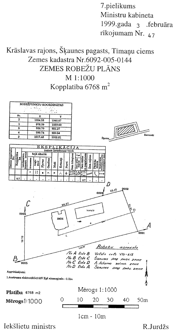 1.7. zemesgabalu 6768 m2 platībā (zemes kadastra Nr. 6092 005 0144, zemesgabala robežas norādītas 7.pielikumā) Krāslavas rajona Šķaunes pagasta Tīmaņu ciemā;