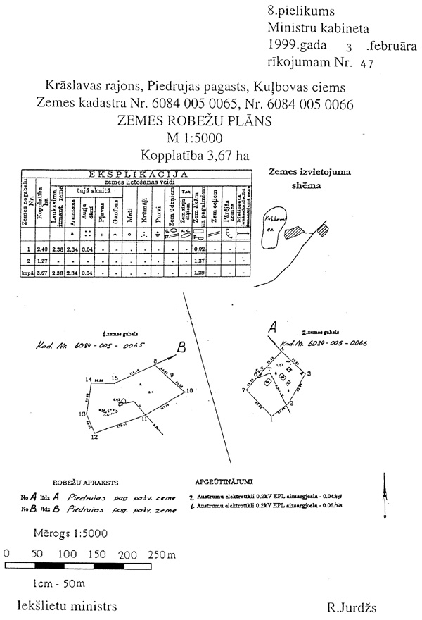 1.8. zemesgabalus 3,67 ha platībā (zemes kadastra Nr. 6084 005 0065 un Nr. 6084 005 0066, zemesgabalu robežas norādītas 8.pielikumā) Krāslavas rajona Piedrujas pagasta Kuļbovas ciemā;