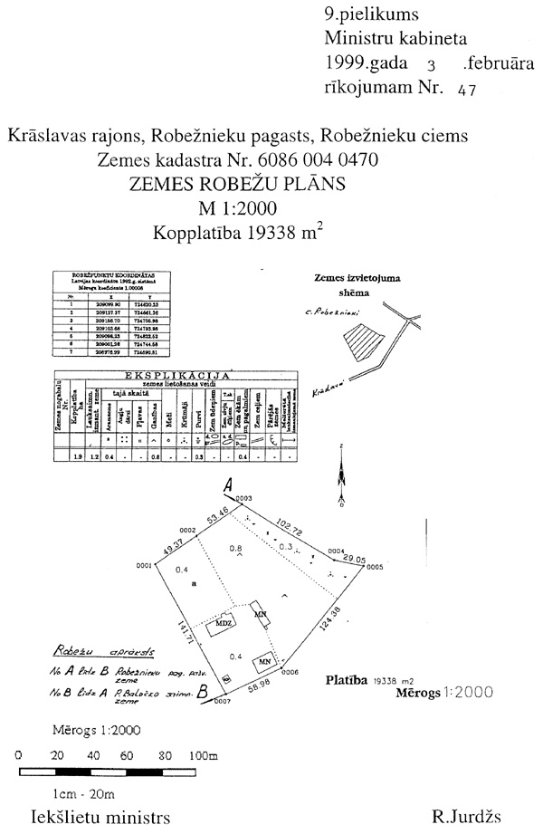 1.9. zemesgabalu 19338 m2 platībā (zemes kadastra Nr. 6086 004 0470, zemesgabala robežas norādītas 9.pielikumā) Krāslavas rajona Robežnieku pagasta Robežnieku ciemā;