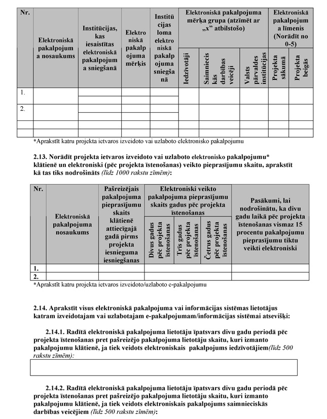 | 37. | Projekta ietvaros izveidojamā (uzlabojamā) uz iedzīvotājiem vai saimnieciskās darbības veicējiem vērstā elektroniskā pakalpojuma elektronizācijas pakāpe (ja attiecināms) |