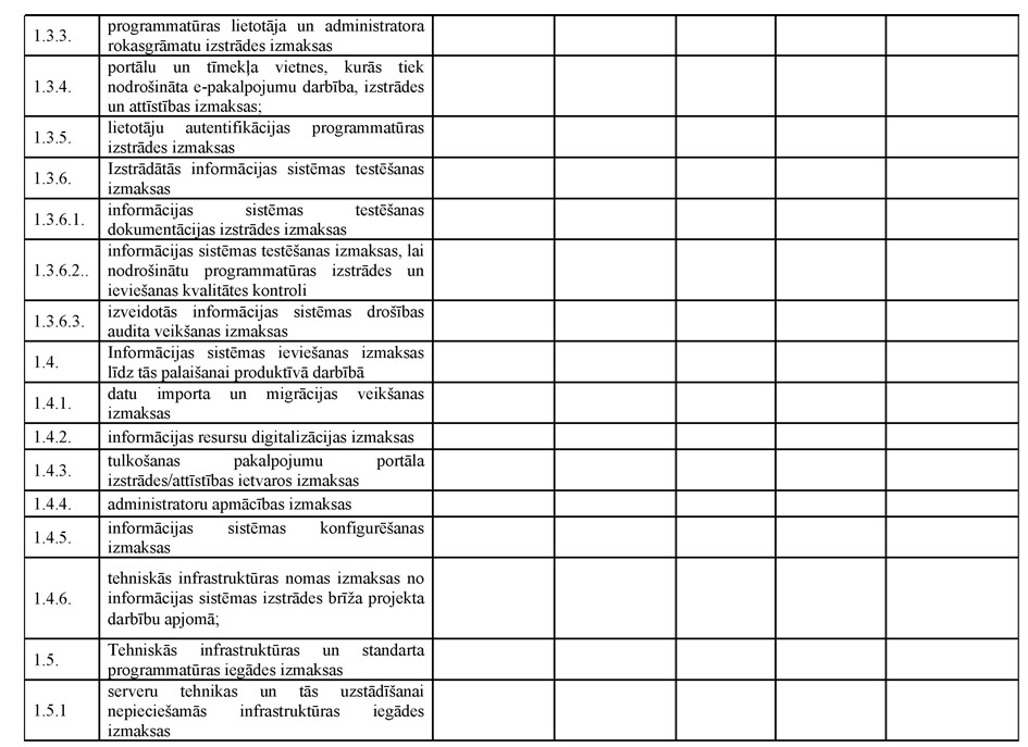 16.1.2. informācijas sistēmas iegādes tehniskās specifikācijas izstrādes izmaksas;