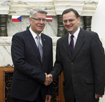 Vizītes turpinājumā Valsts prezidents tikās ar Čehijas valdības vadītāju Petru Nečasu. V.Zatlers pateicās premjerministram par viņa valsts ieguldījumu Latvijas gaisa telpas patrulēšanā. Amatpersonas arī pārrunāja Eiropas Savienības enerģētikas politiku. Spriežot par enerģētisko drošību Eiropas tirgū, Valsts prezidents atzīmēja, ka nepieciešams nodrošināt dažādus, alternatīvus enerģijas piegādes avotus un ceļus. Sarunas laikā tika diskutēts par Eiropas Savienības lauksaimniecības politikas nostādnēm. V.Zatlers norādīja, ka tā nav taisnīga pret Latviju un ir jāstrādā pie pamatprincipu pārveides, lai visas valstis varētu saņemt vienlīdzīgu atbalstu. Čehijas valdības vadītājs atbalstīja domu, ka lauksaimniecības politikai ir nepieciešamas reformas.