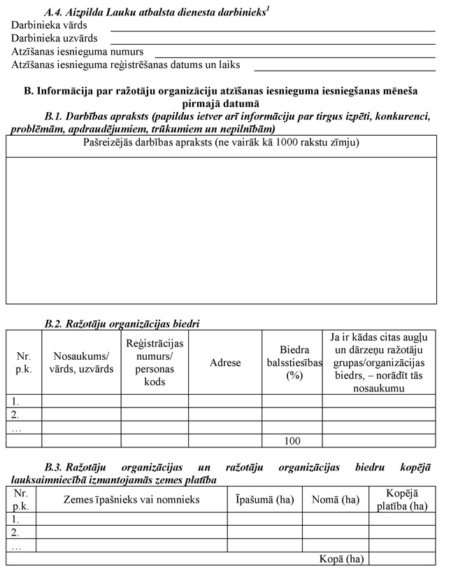 9. Ja atzīšanas iesniegumā nav norādīta visa nepieciešamā informācija, dienests to rakstiski pieprasa ražotāju organizācijai. Ražotāju organizācija 10 darbdienu laikā no pieprasījuma saņemšanas dienas iesniedz dienestā pieprasīto informāciju.