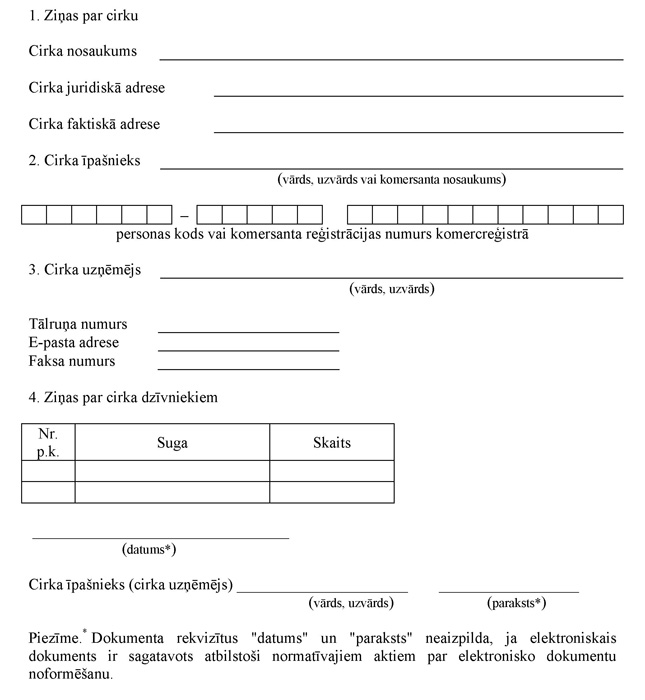 5. Cirka uzņēmējs saskaņā ar regulas Nr.1739/2005 4.panta 1.punktu iesniedz dienestā cirka reģistrācijas iesniegumu (pielikums).