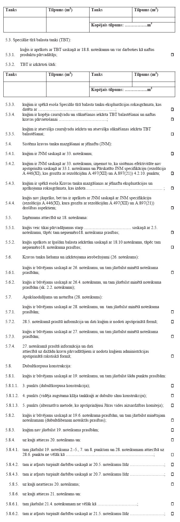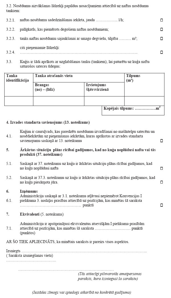 Kuģa vārds: ………………. Pazīšanas numurs vai burti: ……………………. SJO Nr.: ……