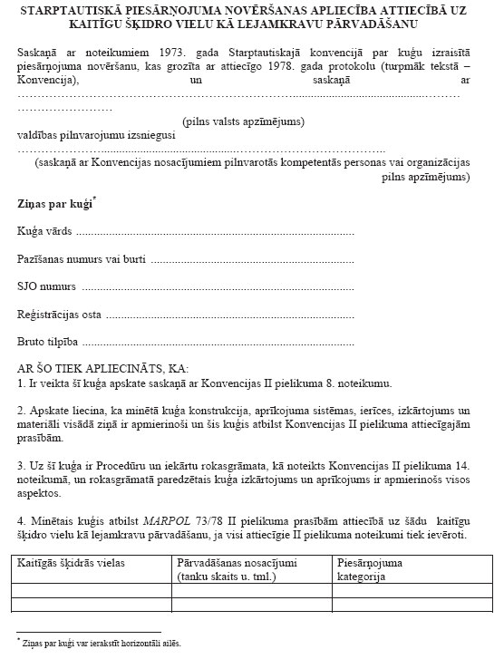* Skatīt MARPOL 73/78 V pielikuma īstenošanas vadlīnijas.