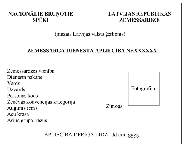 Zemessarga dienesta apliecības paraugs