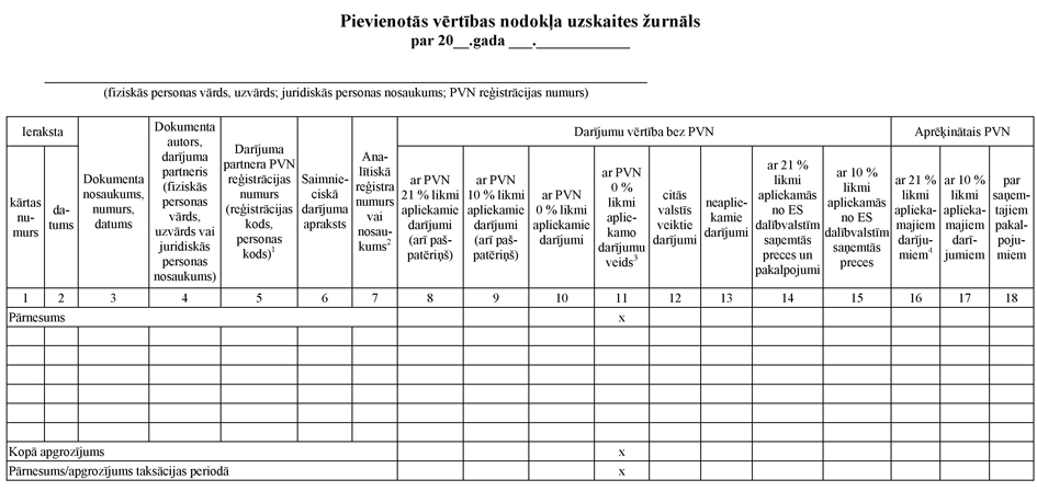 2. 1 Žurnāla 5.ailē norāda darījuma partnera reģistrācijas numuru ar PVN apliekamo personu reģistrā, pirms cipariem norādot valsts kodu; neapliekamai personai norāda reģistrācijas kodu, fiziskai personai – personas kodu (ja tāds ir).