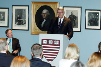 Valsts prezidents Valdis Zatlers Hārvarda universitātes katedrā Foto: Toms Kalniņš, VPK |