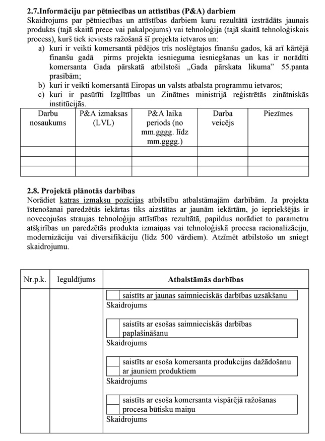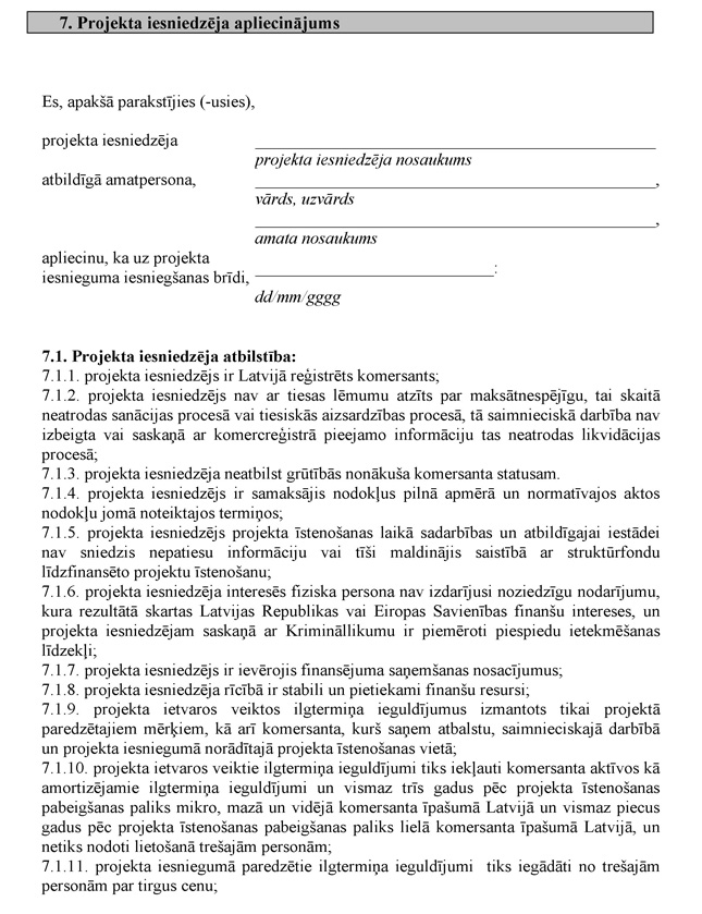 | 27. | Projekta iesniegums ir iesniegts vienā eksemplārā. Ja projekta iesniegums ir iesniegts papīra formā, projekta iesnieguma veidlapa iesniegta arī elektroniski | P | ||