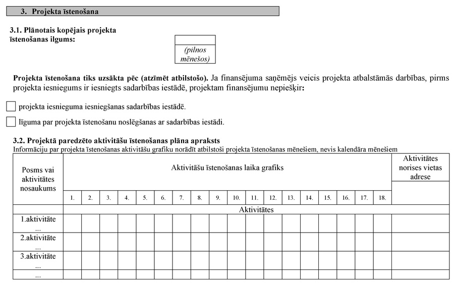 6. Aktivitātes īstenošanas veids ir atklāta projektu iesniegumu atlase.