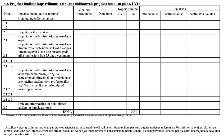 7. Maksimālais pieļaujamais Eiropas Sociālā fonda līdzfinansējuma apmērs ir 92,03 procenti no projekta attiecināmo izmaksu kopsummas.