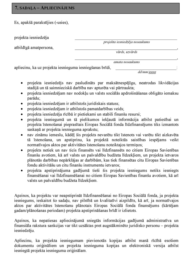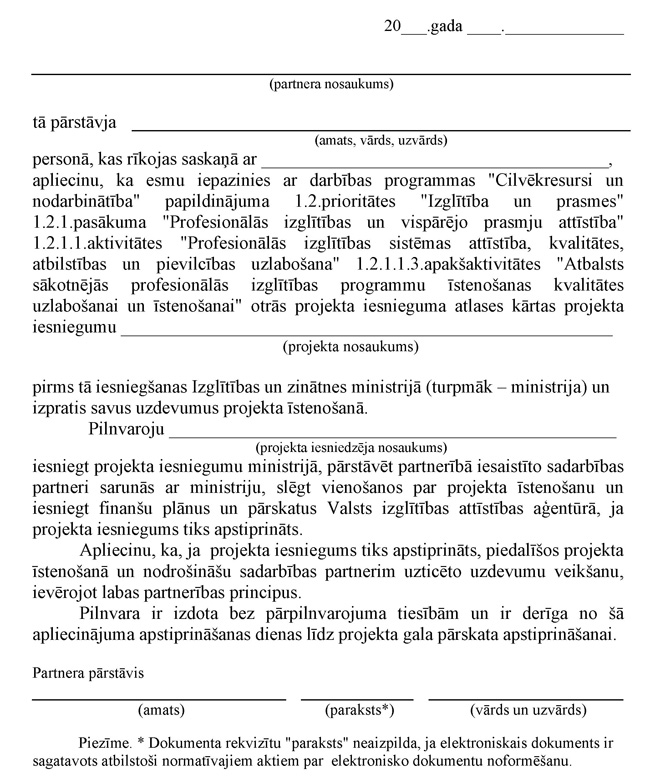 19.3. projekta iesniegumu paraksta projekta iesniedzējas institūcijas vadītājs vai tā pilnvarota persona, projekta iesniegumam pievienojot attiecīgo pilnvarojumu.