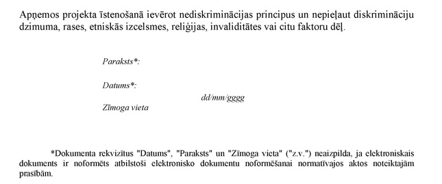 21.2.2. projekta iesnieguma veidlapa ir parakstīta atsevišķi ar drošu elektronisko parakstu un apliecināta ar laika zīmogu pirms projekta iesnieguma iesniegšanas termiņa beigām.