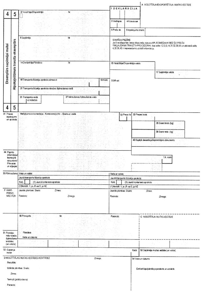 1. T1B dokumenta 4. papildu eksemplārs tiek iesniegts tranzīta statistikas nolūkam, ja tas līgumslēdzējai pusei nav nepieciešams līdz pirmajai tranzīta iestādei katras līgumslēdzējas puses teritorijā.