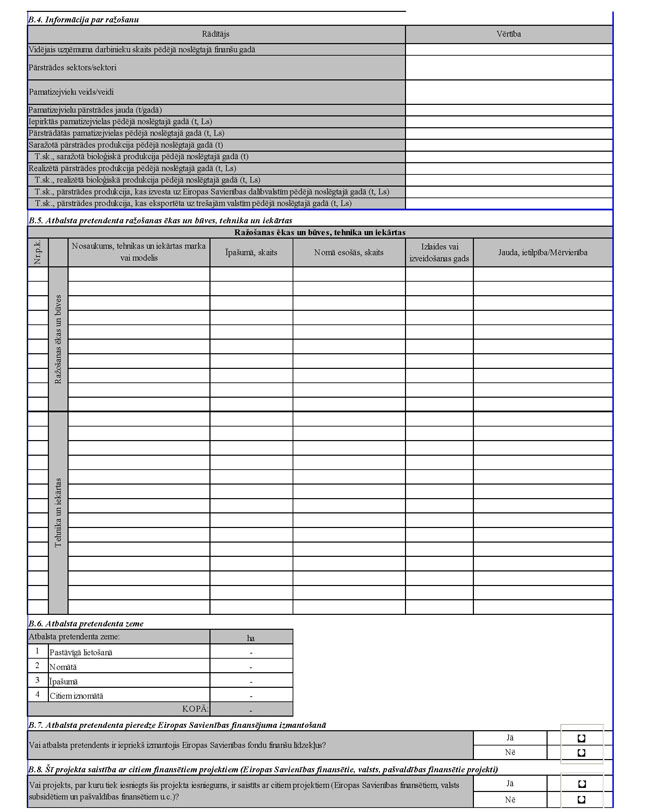 "IV. Atbalsta nosacījumi piena, gaļas, graudu, augļu un dārzeņu pārstrādes sektorā".