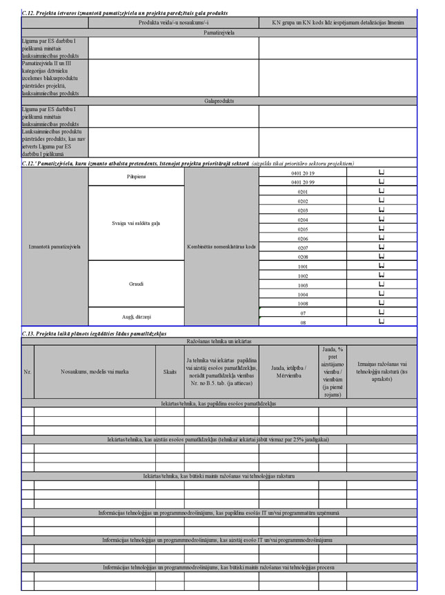 "13.1.1 EUR 7 000 000 ekvivalentu latos – šo noteikumu 6.punktā minēto aktivitāšu veikšanai gaļas, piena, graudu, augļu un dārzeņu sektora pārstrādes uzņēmumā šādos gadījumos: