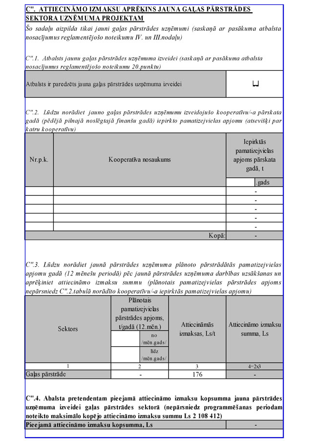 "20. Attiecināmās izmaksas šo noteikumu 6.punktā minēto aktivitāšu veikšanai jaunā pārstrādes uzņēmumā nosaka atbilstoši šo noteikumu 1.pielikumam, ņemot vērā gadam plānoto pārstrādātās pamatizejvielas apjomu, kas nepārsniedz kooperatīva iepirkto pamatizejvielas apjomu pārskata gadā."