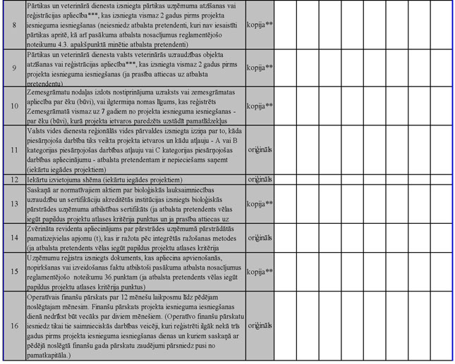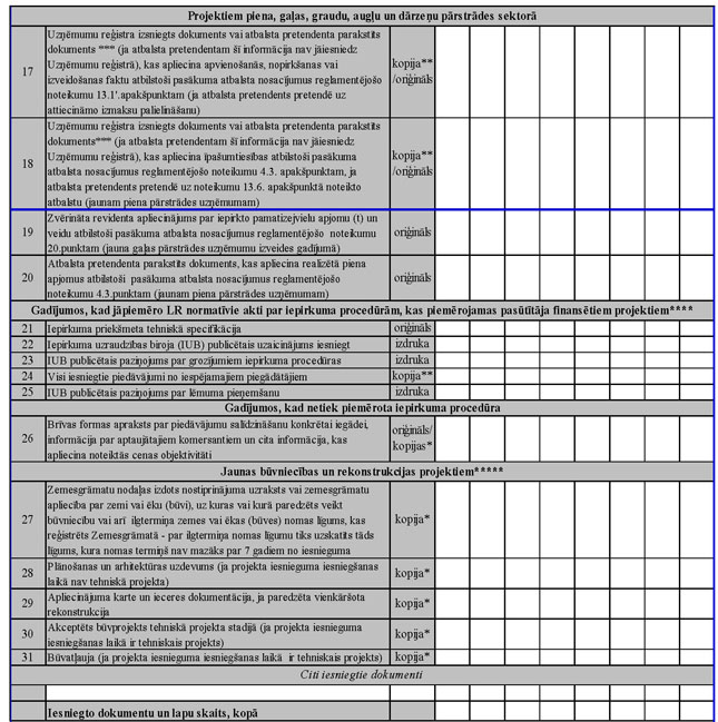 "35.14. papildus šādus dokumentus, ja projekts attiecas uz piena, gaļas, graudu, augļu un dārzeņu pārstrādes sektoru:".