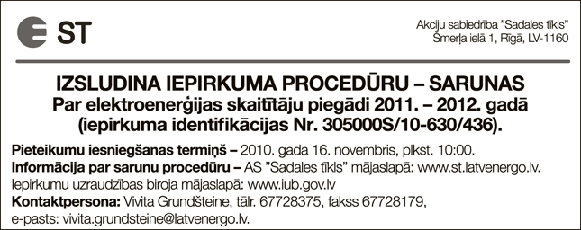 piedāvājumus var iesniegt līdz 2010.gada 17.novembra