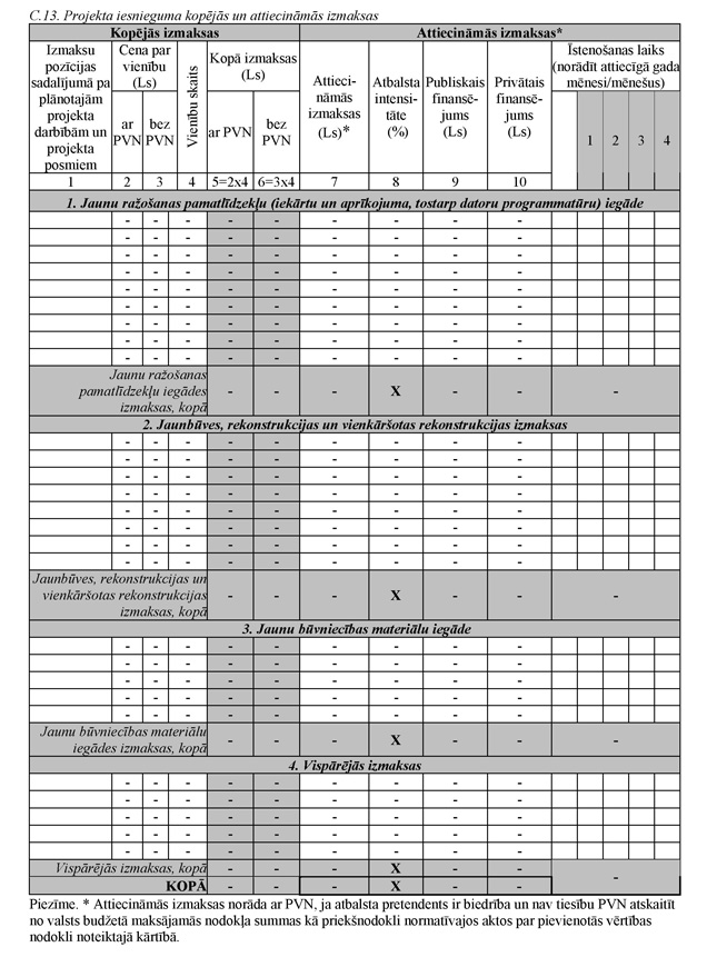 "15.6. vispārējās izmaksas (tostarp arhitektu, inženieru un konsultantu pakalpojumu, juridisko pakalpojumu, tehniski ekonomisko pamatojumu, patentu un licenču saņemšanas izmaksas), kas tieši saistītas ar projekta sagatavošanu vai īstenošanu. Vispārējās izmaksas nepārsniedz astoņus procentus no pārējo šo noteikumu 15.punktā minēto attiecināmo izmaksu kopsummas. Projekta iesnieguma sagatavošanas, konsultāciju un juridisko pakalpojumu izmaksas nepārsniedz divus procentus no pārējo šo noteikumu 15.punktā minēto attiecināmo izmaksu kopsummas."