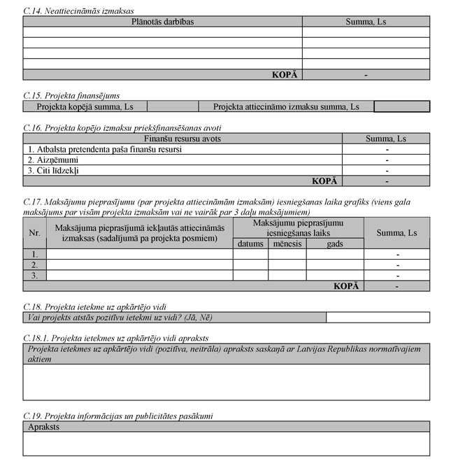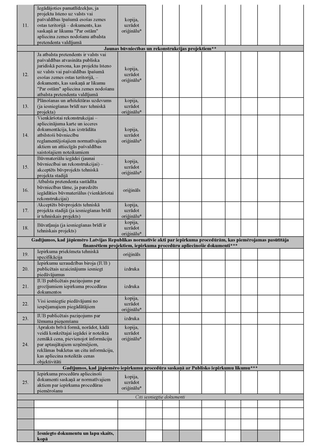 "10.3.1. projekta iesniegumu (1.pielikums) divos eksemplāros (vienu projekta iesnieguma eksemplāru atbalsta pretendents saņem atpakaļ ar Lauku atbalsta dienesta atzīmi par iesniegšanu (neattiecas, ja projekta iesniegumu iesniedz elektroniska dokumenta formā));".