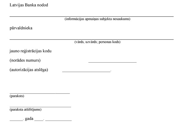 27. Lai reģistrētu pārvaldnieku, informācijas apmaiņas subjekts iesniedz Latvijas Bankai rakstisku pārvaldnieka reģistrēšanas pieteikumu (2. pielikums).
