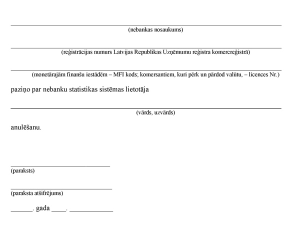Nebanku statistikas sistēmas lietotāja anulēšanas pieteikums