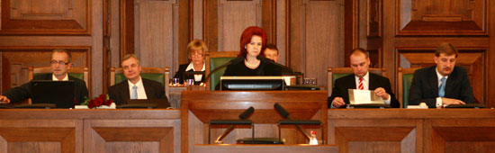 10.Saeima 2.novembrī savā pirmajā sēdē par Saeimas priekšsēdētāju ievēlēja Solvitu Āboltiņu.