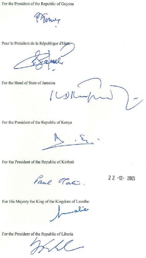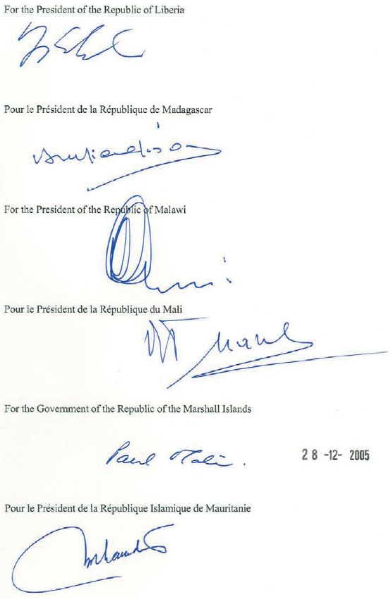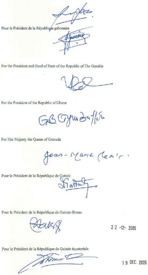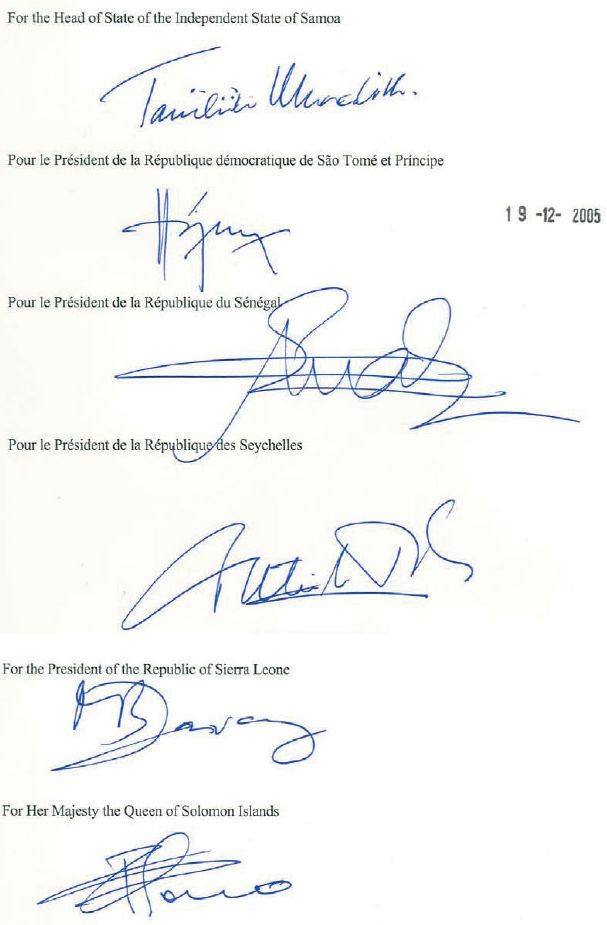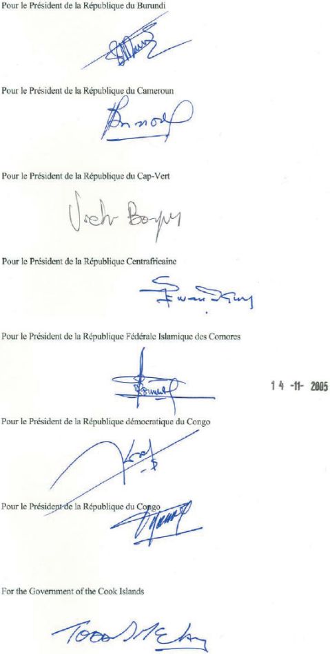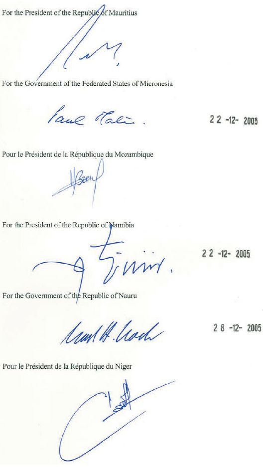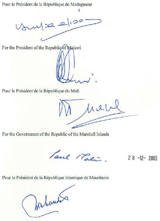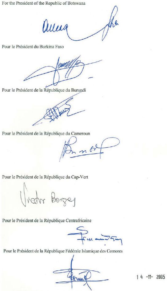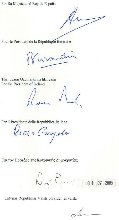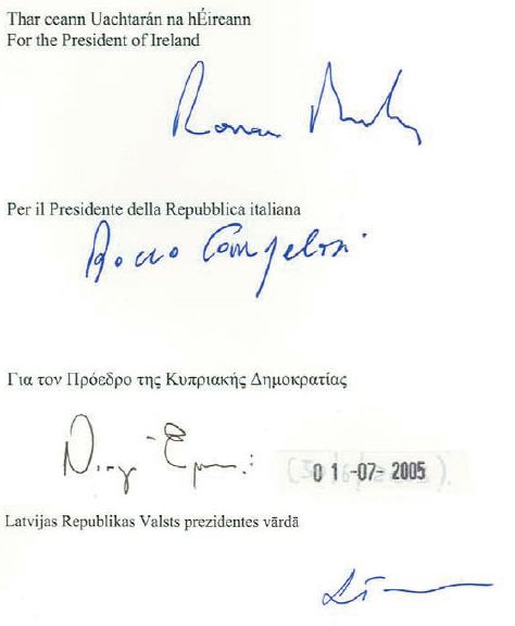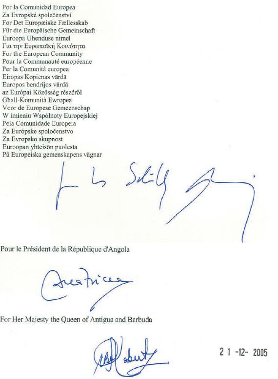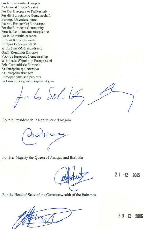 Ez a megállapodás 2005. június 25-én Luxembourgban, majd 2005. július 1. és 2005. december 31. között Brüsszelben, az Európai Unió Tanácsának Főtitkárságán aláírásra nyitva áll.