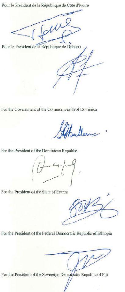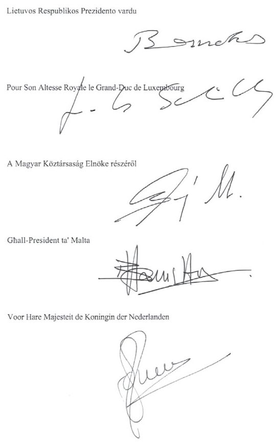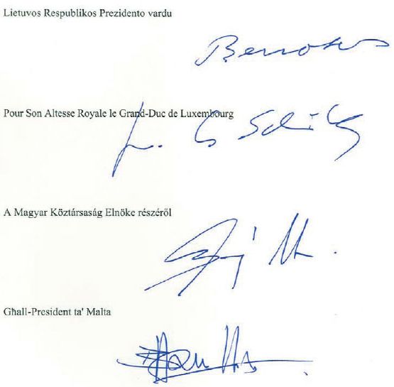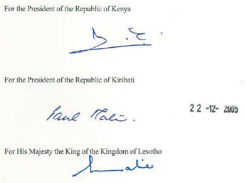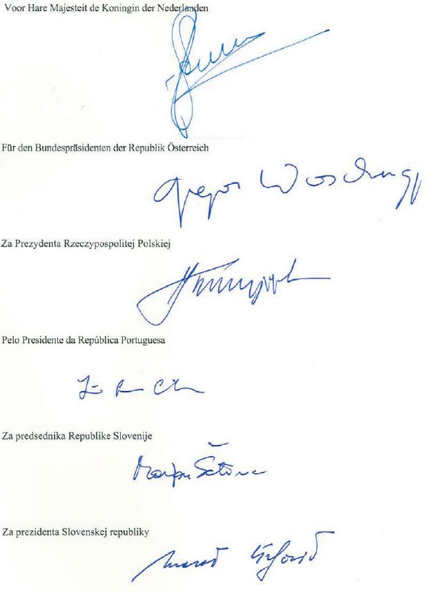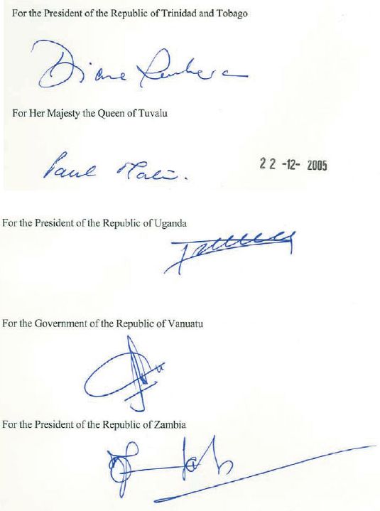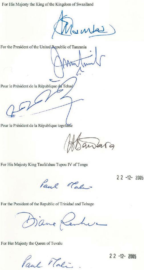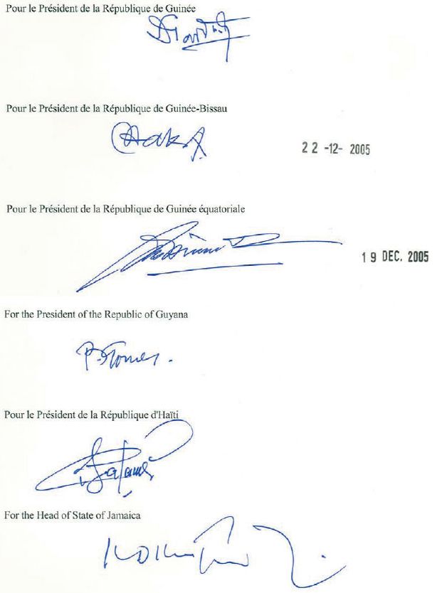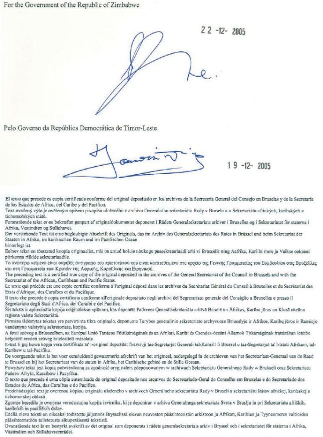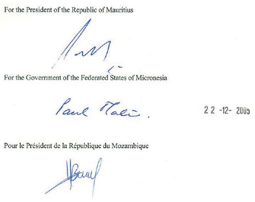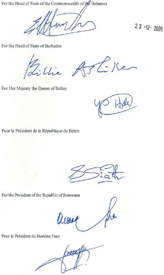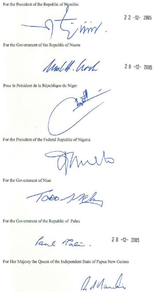 Ez a megállapodás 2005. június 25-én Luxembourgban, majd 2005. július 1. és 2005. december 31. között Brüsszelben, az Európai Unió Tanácsának Főtitkárságán aláírásra nyitva áll.