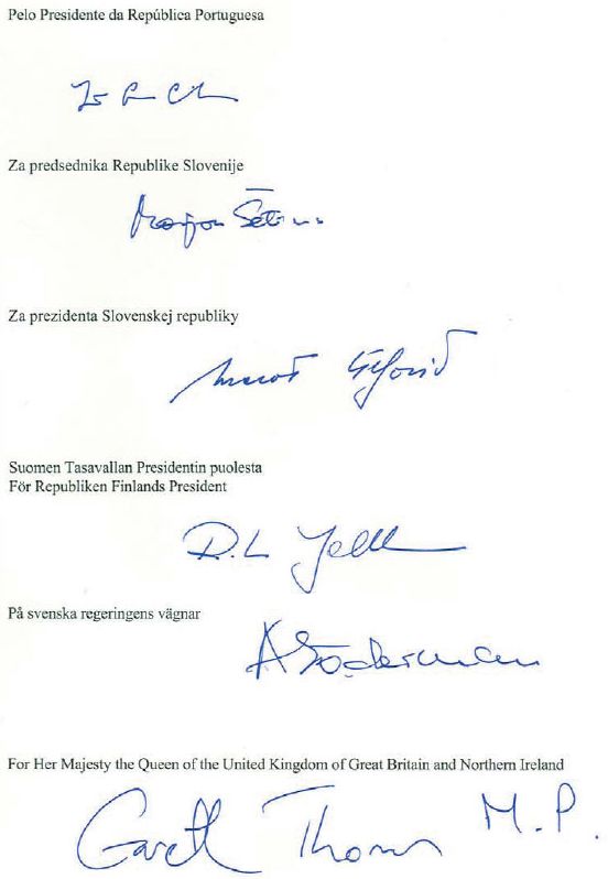 Omenjeni sporazum je na voljo za podpis v Luxembourgu 25. junija 2005 in od 1. julija 2005 do 31.decembra 2005 na generalnem sekretariatu Sveta Evropske unije v Bruslju.