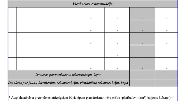 Vienkāršotai rekonstrukcijai par kopējo rekonstruējamo platību (bez PVN) |