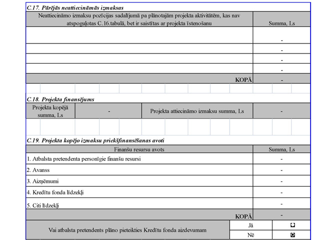 10. Projekta iesniegumam, kura kopējā attiecināmo izmaksu summa ir mazāka par 150 000 latu, pievieno: