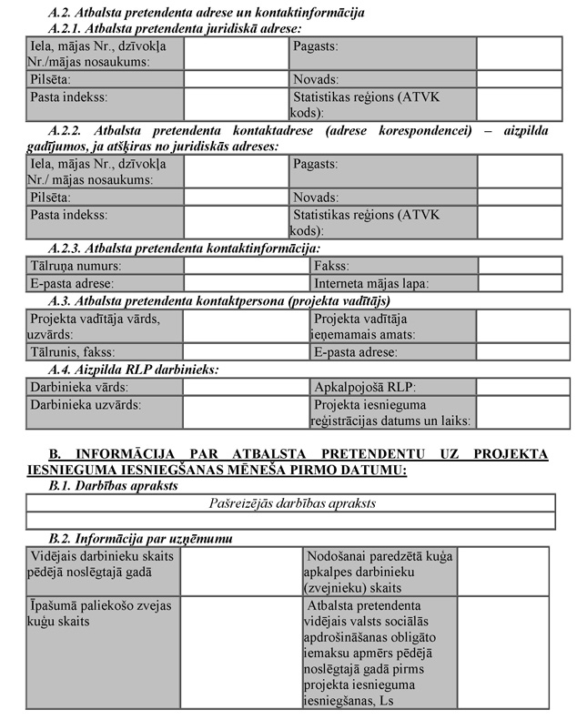 14.1. projekta iesniegumu (1.1 pielikums) divos eksemplāros (ja projekta iesniegumu iesniedz papīra formā), no kuriem vienu eksemplāru atbalsta pretendents saņem atpakaļ ar Lauku atbalsta dienesta atzīmi par iesniegšanu. Par katru zvejas kuģi iesniedz atsevišķu projekta iesniegumu;