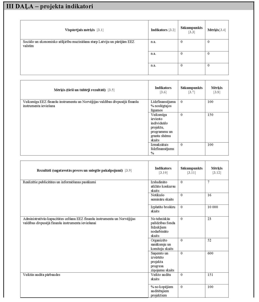 Vispārējais projekta mērķis ir sekmīga Eiropas Ekonomikas zonas finanšu instrumenta un Norvēģijas valdības finanšu instrumenta īstenošana. Projekta mērķis ir paaugstināt sabiedrības informētību par Eiropas Ekonomikas zonas finanšu instrumentu un Norvēģijas valdības finanšu instrumentu, nodrošināt informācijas sniegšanu potenciālajiem projekta iesniedzējiem, kā arī uzlabot Eiropas Ekonomikas zonas finanšu instrumenta un Norvēģijas valdības finanšu instrumenta administrēšanu un kontroli. Papildus projekta iesniegumam granta piešķiršana notiek, ņemot vērā vadošās iestādes 2006.gada 6.septembrī iesniegtos pamatojošos dokumentus.