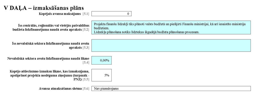 Projekta iesniedzējs (Finanšu ministrija) nodrošinās līdzfinansējumu vismaz 15 procentus no projekta attiecināmajām izmaksām.