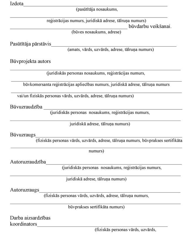 | Kopējā platība | ___________ m2, | būvapjoms | ___________ m3 |