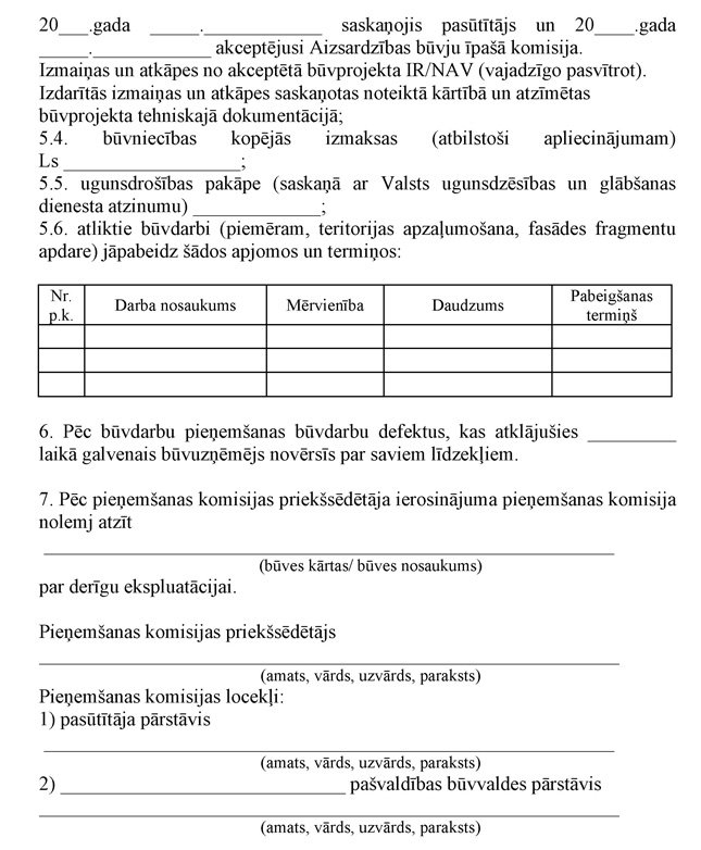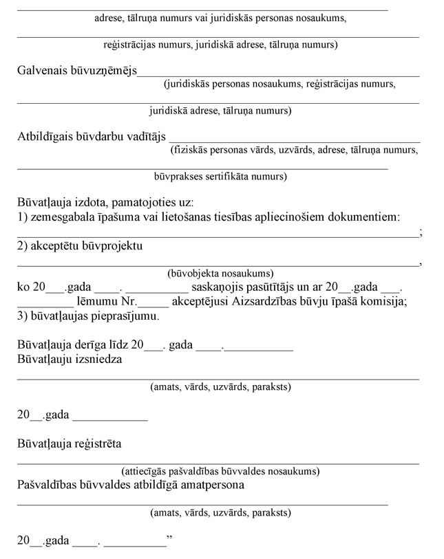 3.8 Pamatojoties uz būvatļaujas pieprasījumu (3.pielikums) un akceptētu būvprojektu, Aizsardzības būvju īpašā komisija izsniedz būvatļauju (4.pielikums).