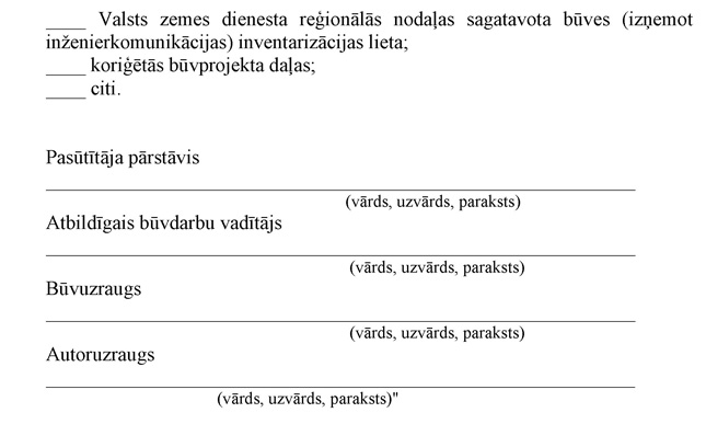3.11 Pēc būvdarbu pabeigšanas pasūtītājs iesniedz Aizsardzības būvju īpašajai komisijai apliecinājumu par būves gatavību ekspluatācijai (5.pielikums).