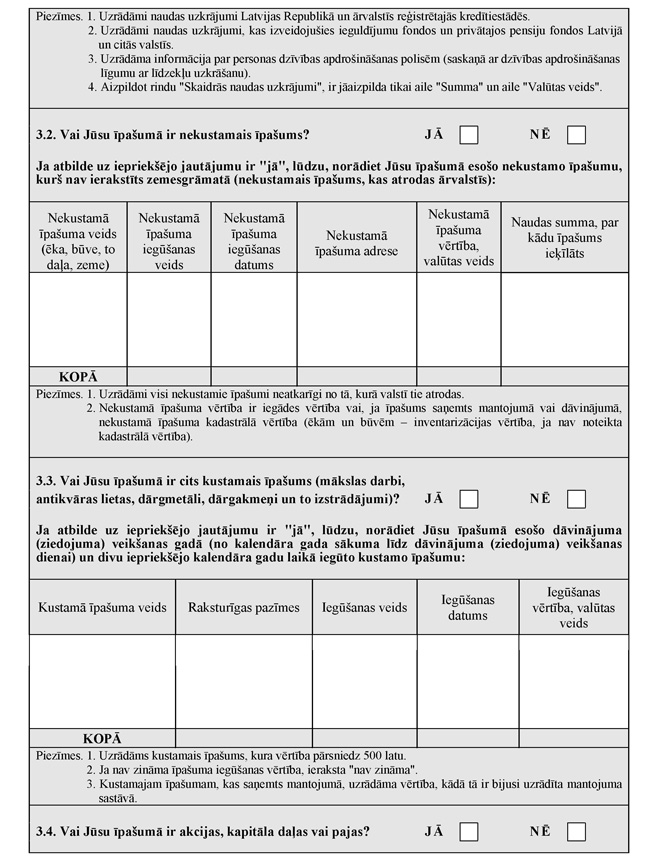 7. Persona aizpildītajam paziņojumam var pievienot jebkuru papildu informāciju vai dokumentus par saviem ienākumiem, izdevumiem un īpašumiem, ko tā uzskata par nepieciešamu sniegt Korupcijas novēršanas un apkarošanas birojam.