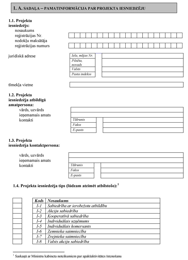 15.2. projekta iesniegumu veido aizpildīta projekta iesnieguma veidlapa (1.pielikums) un šādi pielikumi: