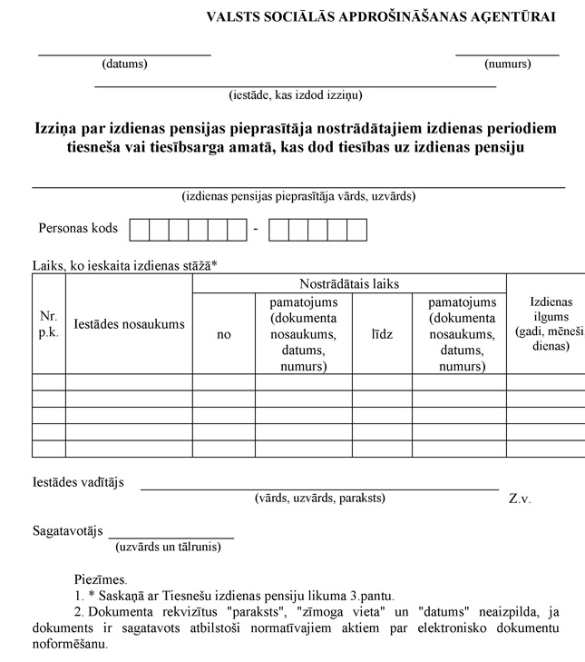 Izdoti saskaņā ar Tiesnešu izdienas pensiju likuma 8.panta ceturto daļu