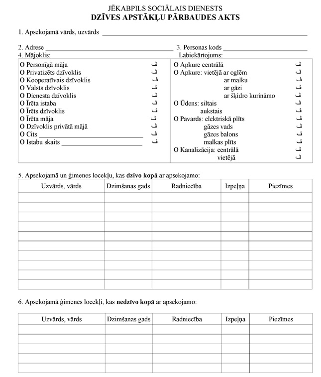 11.3. nepieciešamības gadījumos apmeklē personu mājās un sastāda personas dzīvesvietas pārbaudes aktu, ko paraksta abas puses (3.pielikums);