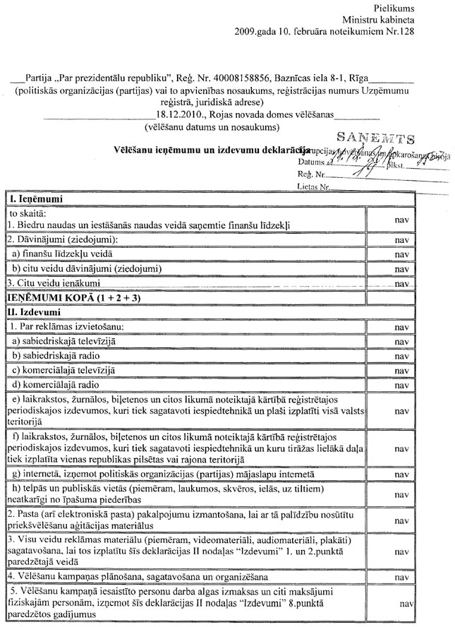 Darbības pārskati. Publicēts oficiālajā laikrakstā "Latvijas Vēstnesis", 29.12.2010., Nr. 205 https://www.vestnesis.lv/ta/id/223521
