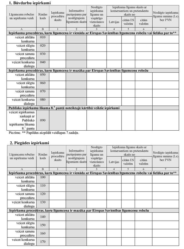 Noteikumi par valsts statistikas pārskatu veidlapu paraugiem iepirkumu jomā un pārskatu iesniegšanas un aizpildīšanas kārtību