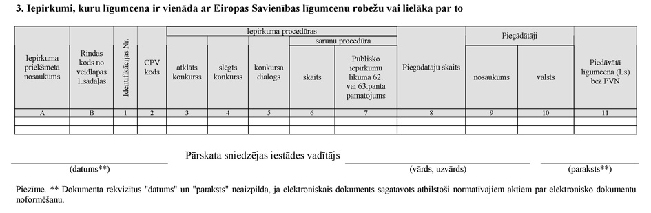 3.4. Veidlapas Nr.2-PIL/C 3.sadaļa "Iepirkumi, kuru līgumcena ir vienāda ar Eiropas Savienības līgumcenu robežu vai lielāka par to"