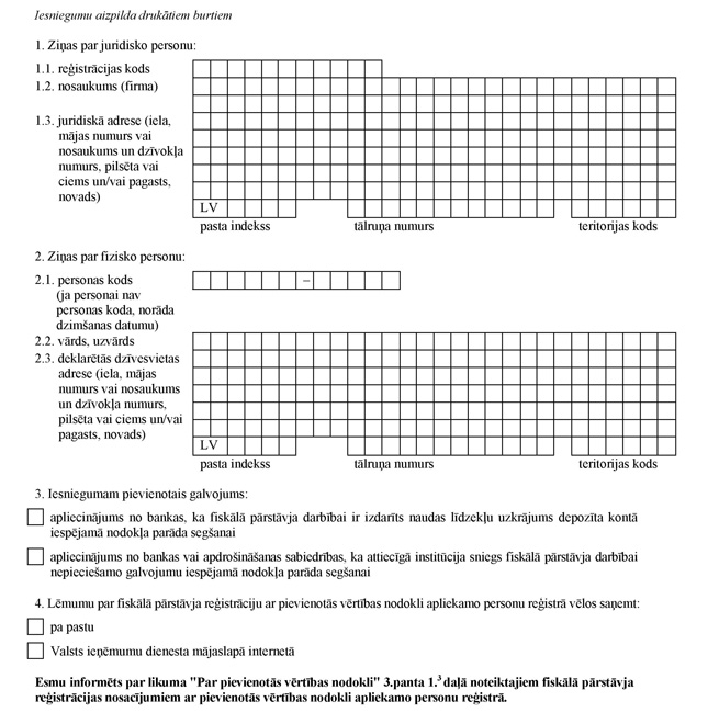 Iesniegums fiskālā pārstāvja reģistrācijai ar pievienotās vērtības nodokli apliekamo personu reģistrā